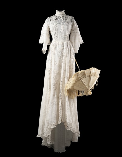 Vestito retrň in cotone e pizzo bianco utilizzato per la pičce "Il giardino dei