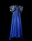 A blue chiffon silk gala dress, the front decorated by a large butterfly bow embroidered with tube-beads like with the bodice and the sleeves (tg. 44) (wear)