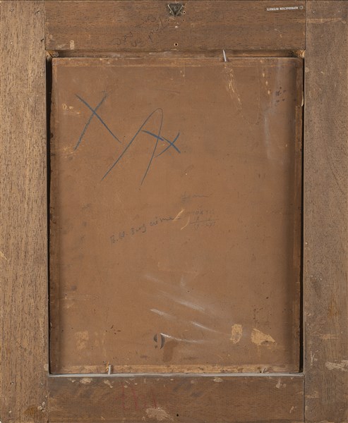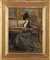 Ignoto del secolo XIX "Ritratto di donna in un atelier" olio su cartone pressat