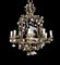 Lampadario a otto luci in metallo dorato decorato a foglie, fiori e centrato da