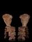 Coppia di antichi sgabelli in noce intagliato e parzialmente dorato con schiena