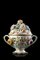 Manifattura del secolo XIX. Zuppiera biansata con coperchio in porcellana decor