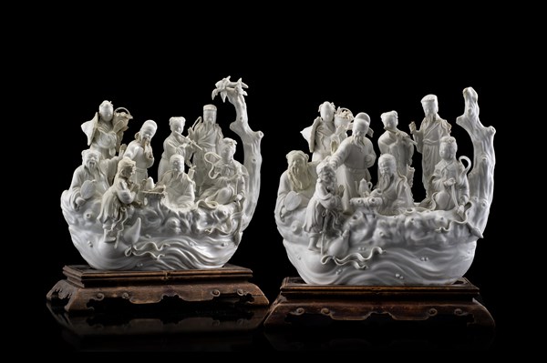 Lot 187 | Coppia di barche della felicitŕ in porcellana bianca. Cina, secolo XX (cm 25x30