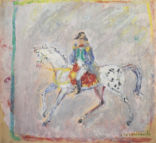 Constantin Terechkovitch "Cavallo pomellato e cavaliere" acquerello su carta in