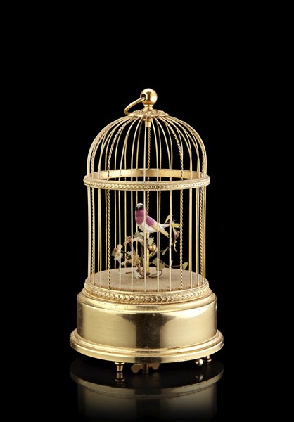 REUGE Automa del tipo "cage ŕ oiseaix" in ottone dorato. Svizzera, seconda metŕ