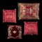 Quattro cuscini confezionati con antichi tessuti in seta, uno in velluto, con a
