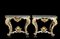 Coppia di console di forma mossa in legno intagliato, laccato e dorato a volute