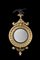 Specchio convesso con cornice in legno dorato decorato nella cimasa a volute fo