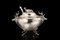 Zuppiera biansata in metallo argentato con presa del coperchio a cervo a tutto