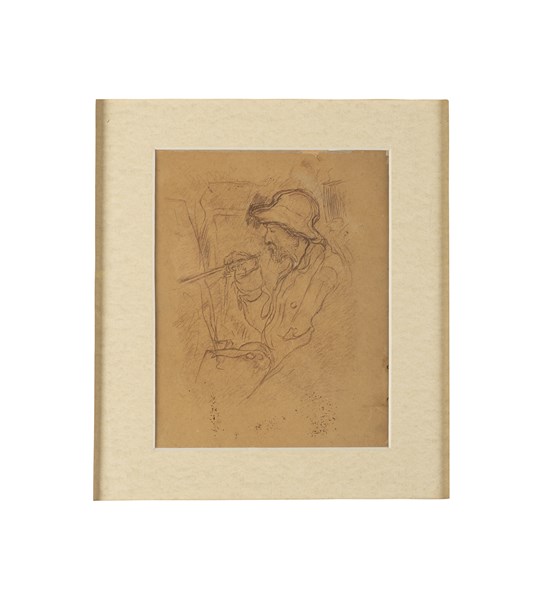 "Ritratto di Renoir al cavalletto" tecnica mista su carta (cm31x27). Al recto "Mademoiselle Dieterle" da Pierre - Auguste Renoir. Firmato in basso a destra. In cornice. Accompagnato da lettera di Jean Renoir datata 21 Aprile 1978