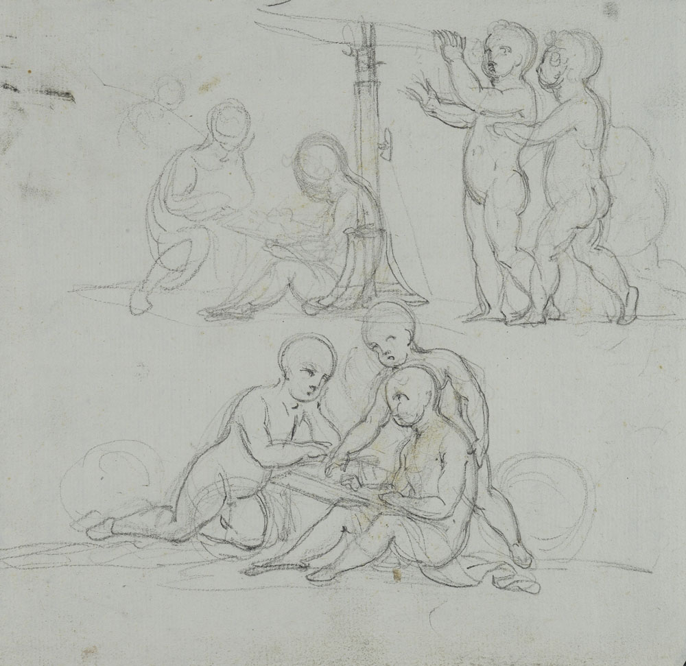 Scuola italiana del XVIII secolo "Putti astronomi" Matita di grafite su carta...
