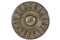 articolata raggera in tesa e nell’ingiro scrittura pseudo cufica; al centro dell’umbone un Uccellino; nel verso: cartellino con timbro e scritta: Collezione Simonetti Roma