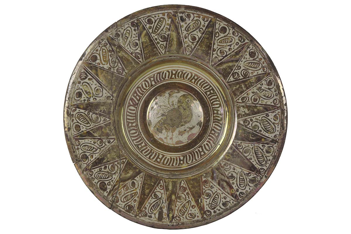Piatto a lustro con scrittura pseudocufica SPAGNA, Manises; sec. XVI.
