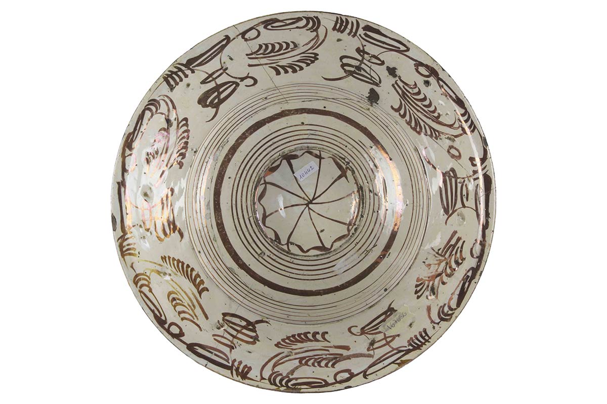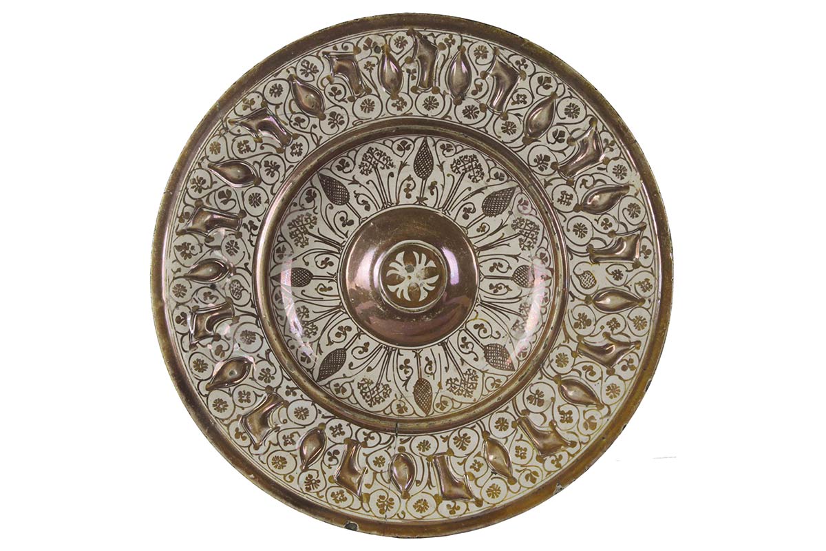 Lot 14 | Piatto in lustro dorato con raggere fitomorfa SPAGNA, MANISES; sec. XVI.