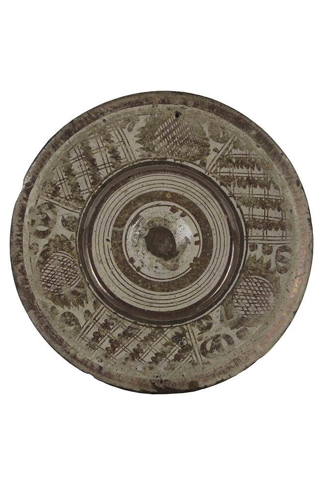 Piatto in lustro dorato, motivi geometrizzanti SPAGNA, MANISES; sec. XVI.
