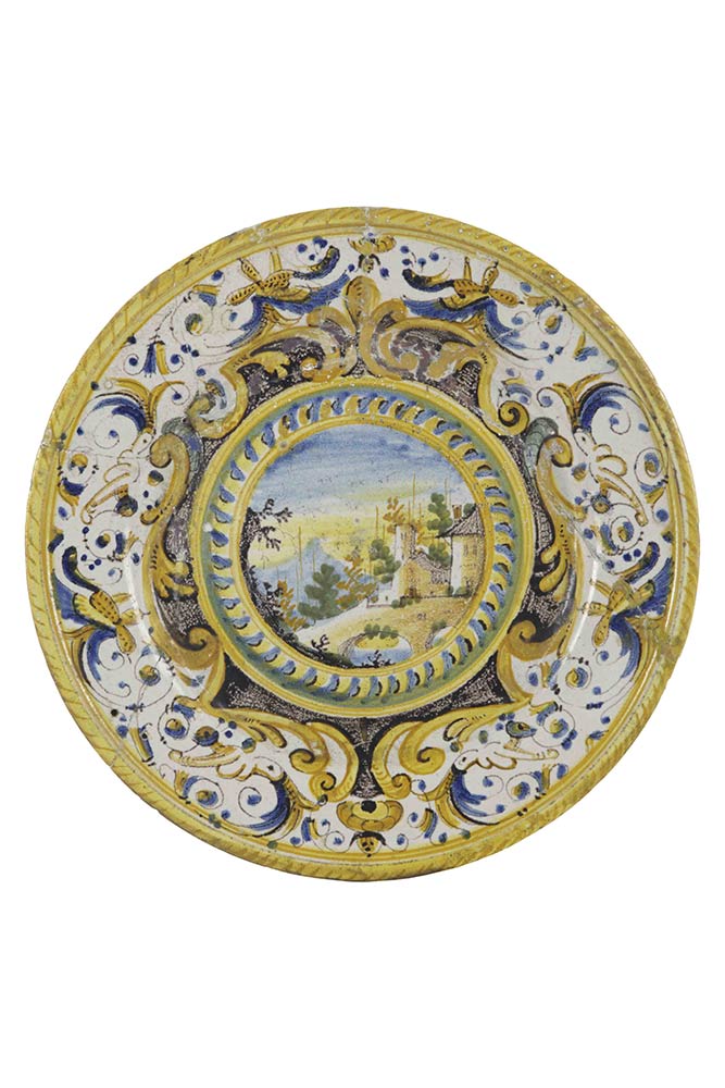 Piatto in maiolica policroma FERMIGNANO (PU), Manifattura di Felice Armaroli; 1710-1720.