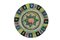 Maiolica dipinta in policromia con registro geometrizzante in tesa e al centro grande fiore a petali raggiati.