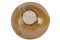 Ciotola in ceramica con orlo cordonato in color lionato; al centro reca in marroncino la scritta cristologica I H S, di antico segno bernardiniano, qui reso con una stilizzazione geometrizzante a linee sottili molto bella e rara.