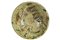 Piccola ciotola graffita e suddipinta in verde e marrone con bordo cordonato e fogliato ai lati; al centro Busto di fanciulla di profilo con a sinistra una rosetta.