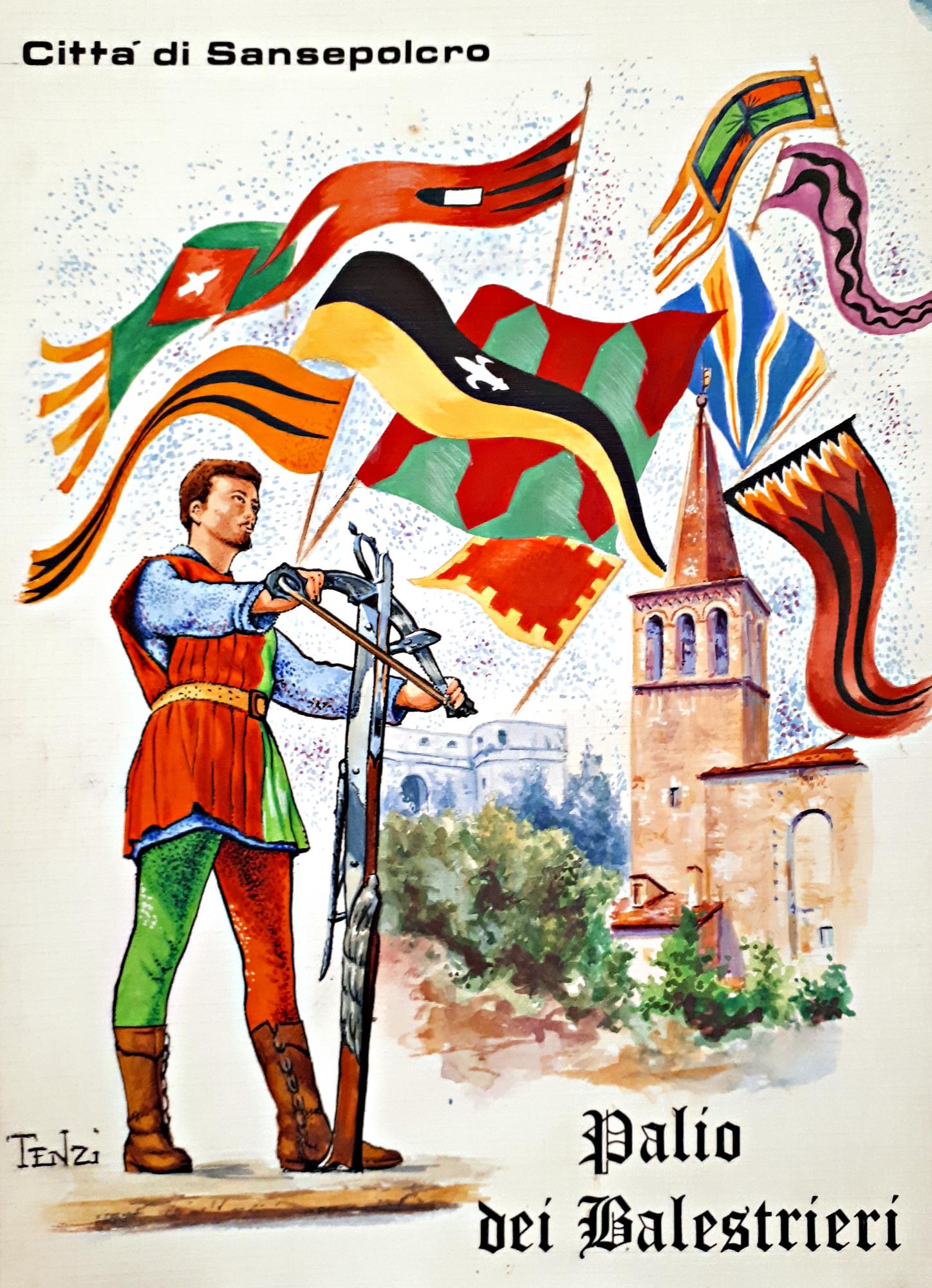 BOZZETTO PER CARTOLINA COMMEMORATIVA. PALIO DEI BALESTRIERI