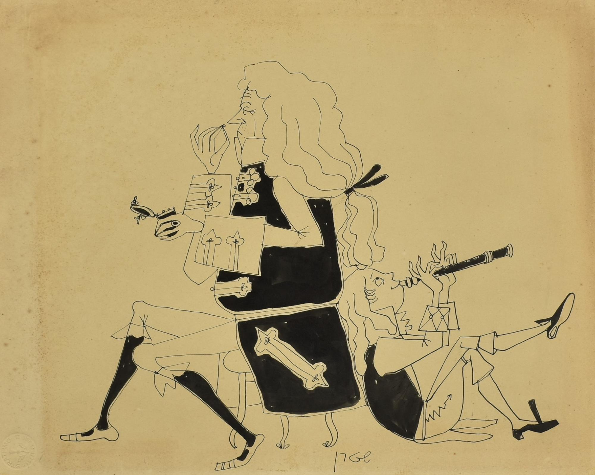 Lot 161 | Ignoto FIGURE china su carta, cm 29,5x37 sigla e timbro a secco Strathmore