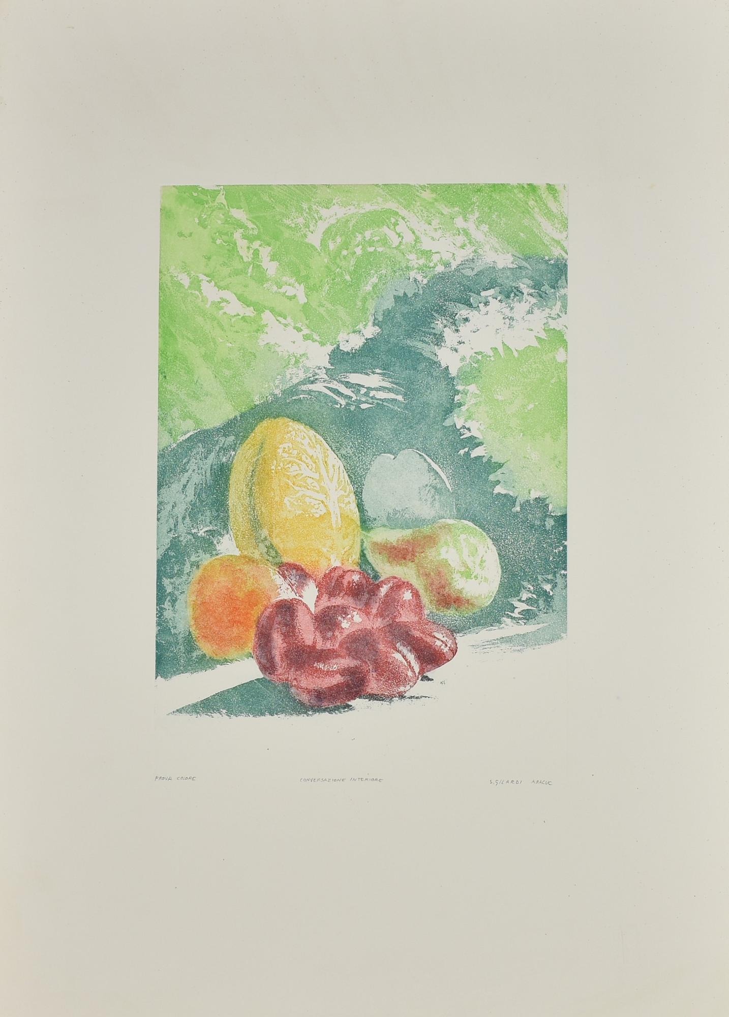 Lot 167 | Abacuc CONVERSAZIONE INTERIORE acquatinta a colori su carta, cm 39,5x27,3, su...