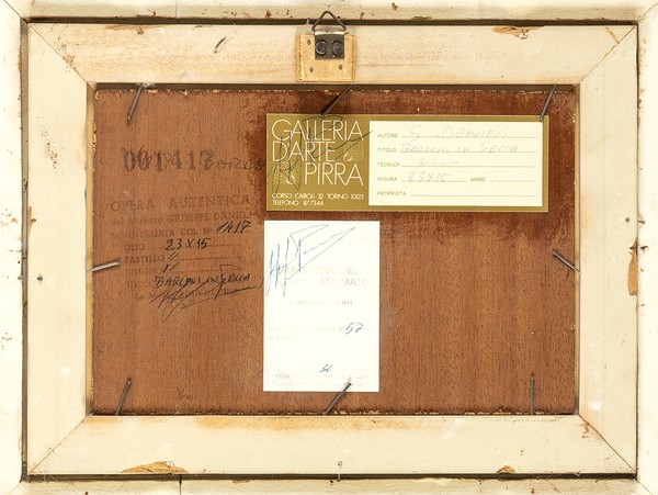 Al retro etichetta della Galleria d’arte Pirra di Torino