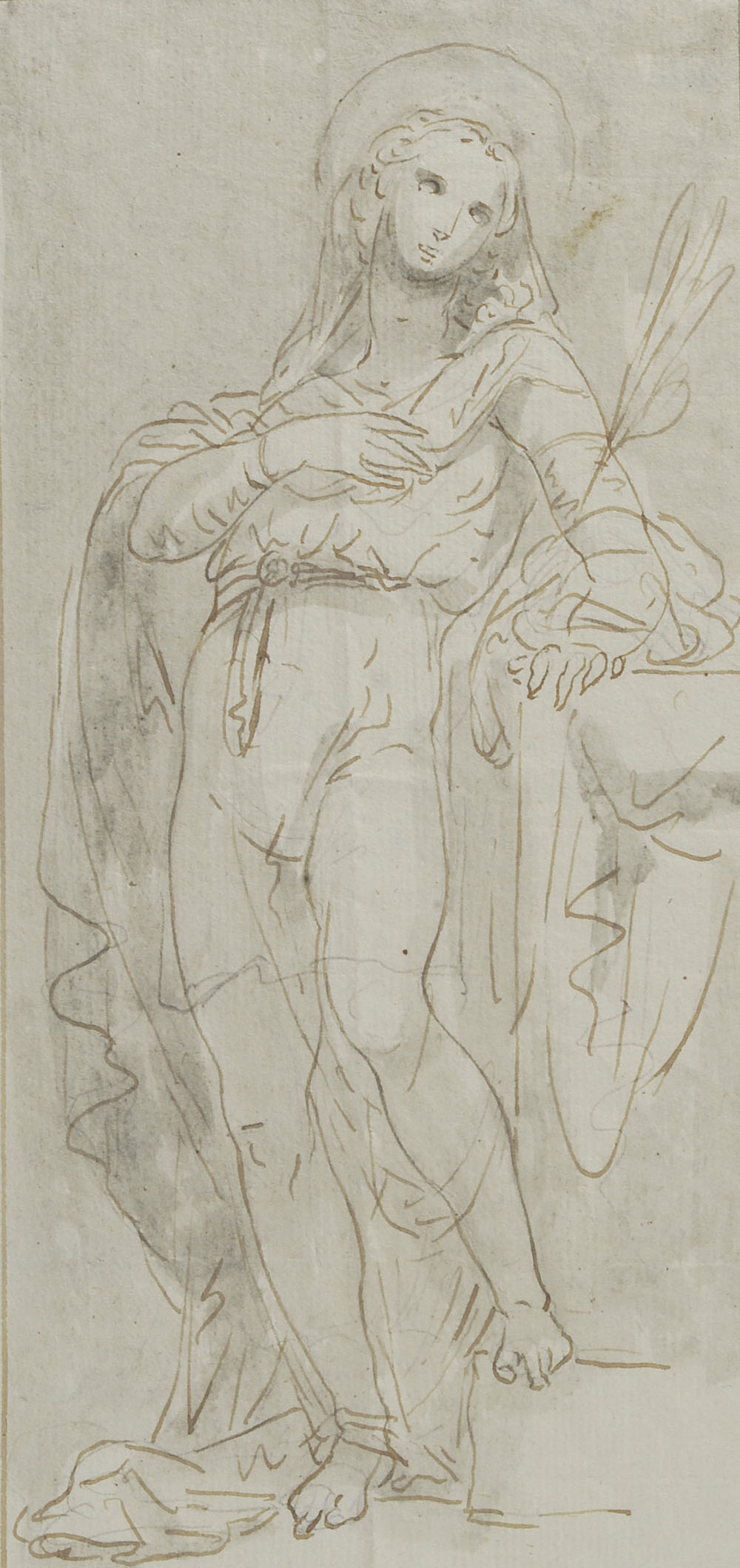 Scuola italiana del XVII secolo Santa Inchiostro bruno su carta vergellata...
