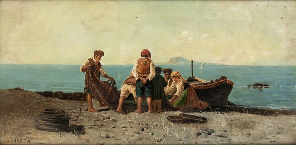 GIUSEPPE LAEZZA (Napoli, 1835 - 1905) ATTR.: Scena Pescherecci