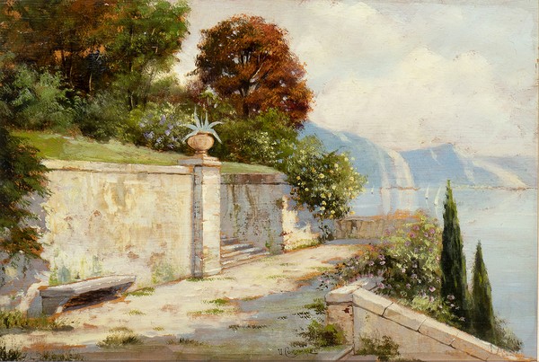 UMBERTO COROMALDI (Roma, 1870 - 1948): Vista del lago di Como, 1935