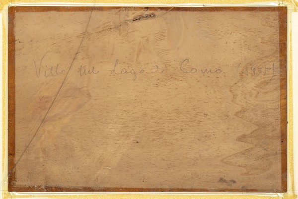 Firmato in basso al centro: U. Coromaldi. Titolato e datato al retro: Vista del lago di Como, 1935