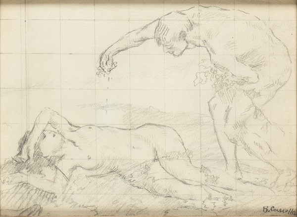 BASILIO CASCELLA (Pescara, 1860 - Roma, 1950): Probabile studio preparatorio per ceramica con scena amorosa