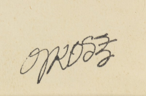 Etichetta sul retro della Biblioteca di Segni e fotografia dell’opera. Al retro timbro del George Grosz Nachlass n° 5.186.7. Al retro etichetta dell’esposizione “Biblioteca di Segni, Disegni da una collezione”