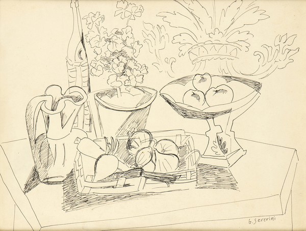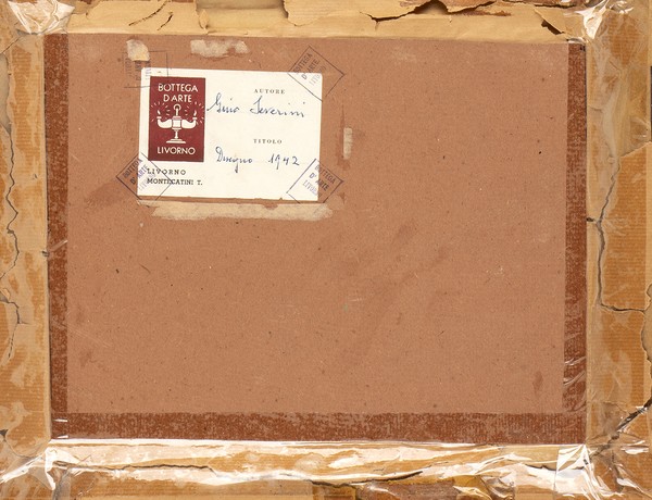 Firmato in basso a destra: “G. Severini”. Sul retro etichetta della Bottega d’Arte Livorno con autore e datazione: “1942.”