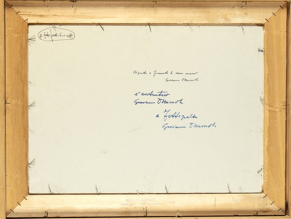 Firmato in basso a sinistra “G. Omiccioli”, al retro autentica dell’autore “Dipinto e firmato a mia mano Giovanni Omiccioli”, ”Autentico Giovanni Omiccioli”