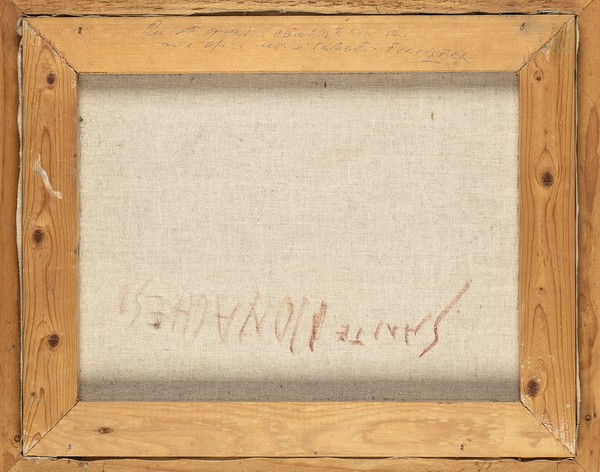 Firmato in basso a sinistra “Monachesi”. Al retro nome dell’artista: Sante Monachesi; e dichiarazione del pittore Filibeck riguardo la provenienza del quadro
