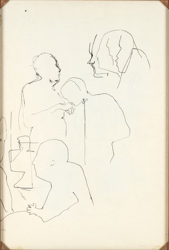 Firmato, datato e titolato: “Attardi 1959”, “Orazione” in basso a sinistra; sul retro schizzi con figure varie