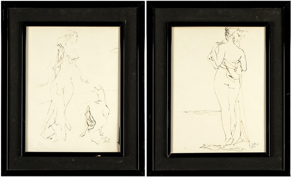 ENNIO CALABRIA (Tripoli, 1937): Lotto composto da due disegni rappresentanti due nudi femminili