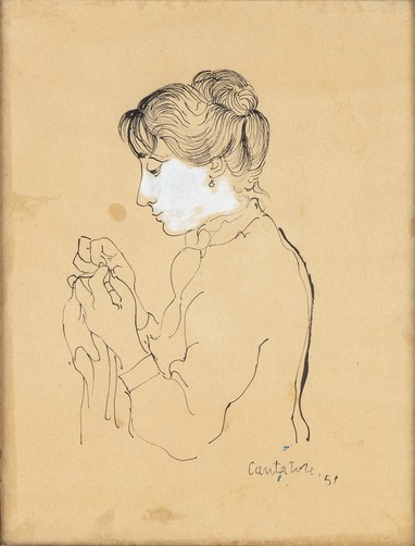 DOMENICO CANTATORE (Ruvo di Puglia, 1906- Parigi, 1998): Donna di profilo che cuce, 1951