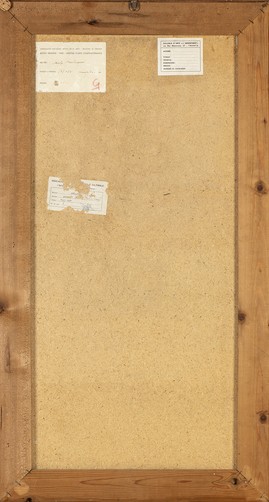 Al retro: etichetta del Sindacato Italiano Artisti Belle Arti - Sezione di Trento, Mostra d'Arte Contemporanea, 1965, Artisti Trentini; etichetta della Galleria L'Argentario di Trento