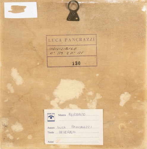 Al retro timbro “LUCA PANCRAZZI, 130” con scritta “indivisibile n. 130 e n.131”, sotto etichetta della Galleria Civica di Modena con autore, titolo e mostra.