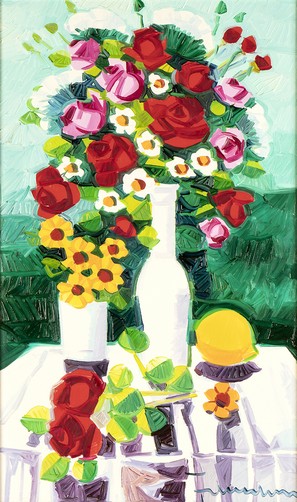 ATHOS FACCINCANI (Peschiera del Garda, 1951): Bottiglia con armonia di fiori, 2000