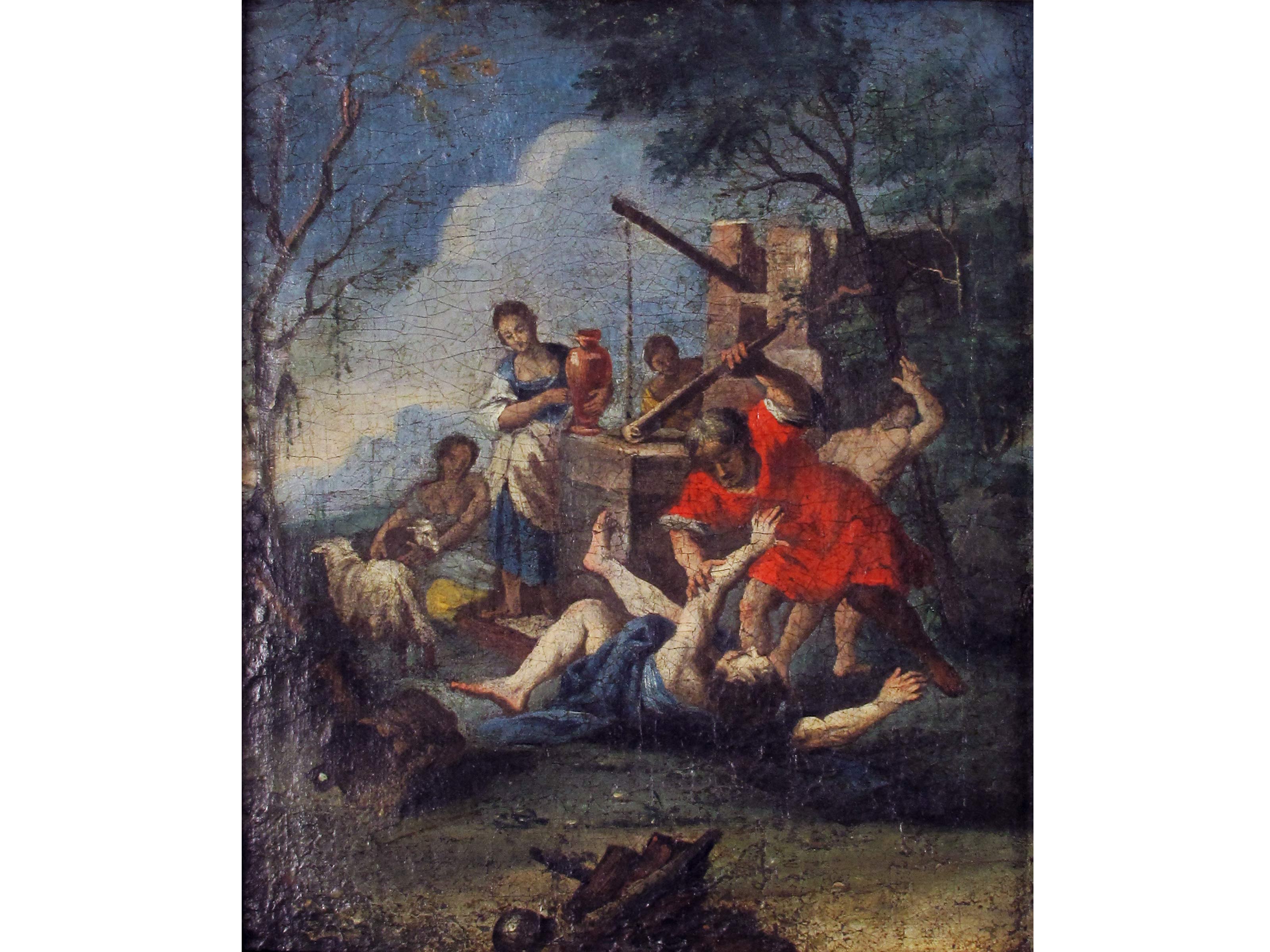 Scuola francese XVII secolo Caino e Abele Olio su tela Misure 26x21,5 cm