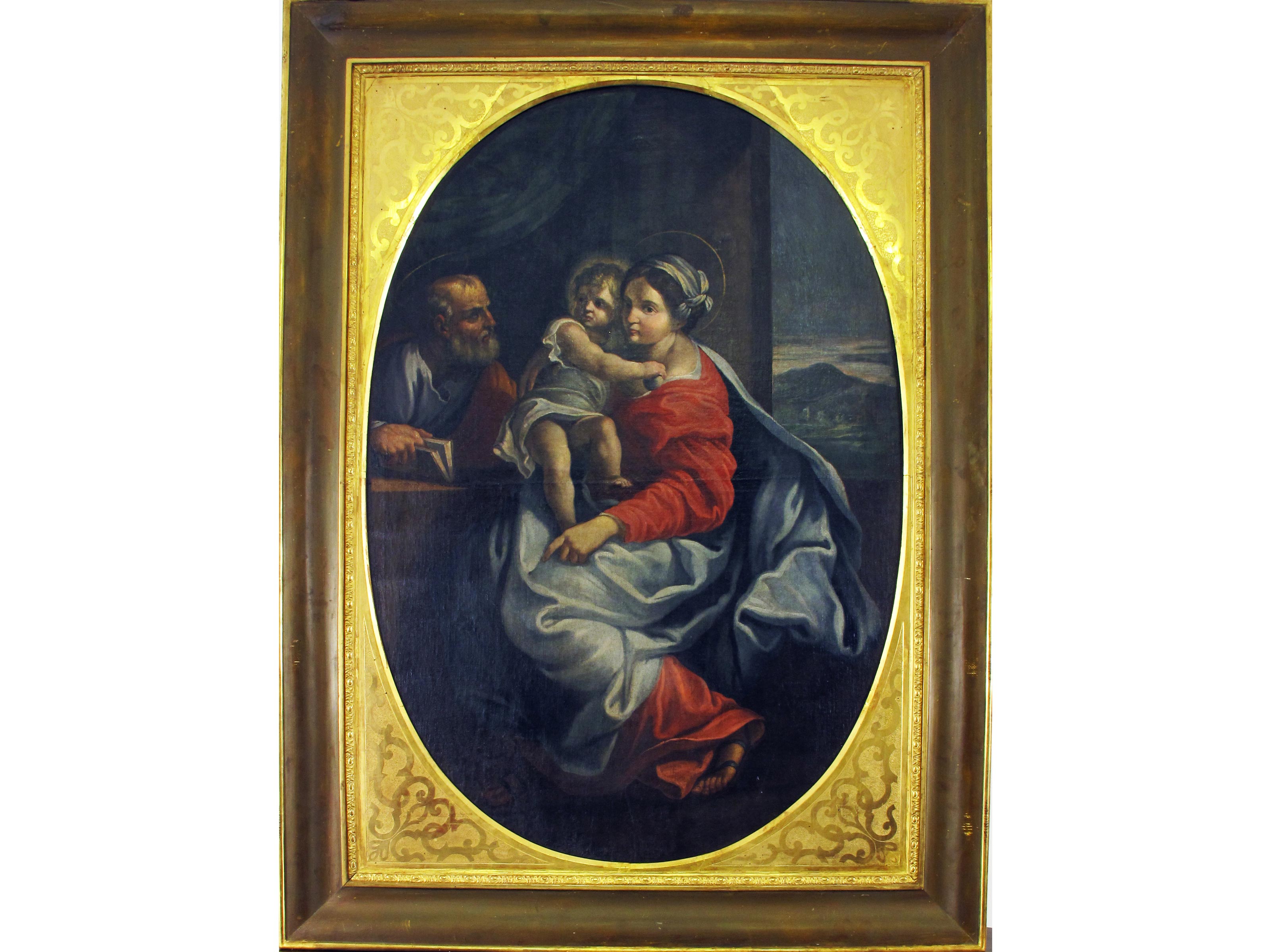 Scuola bolognese XVII secolo La Madonna Montalto Olio su tela Misura dell'ovale 126x86,5 Misura del telaio 128,5x90 cm