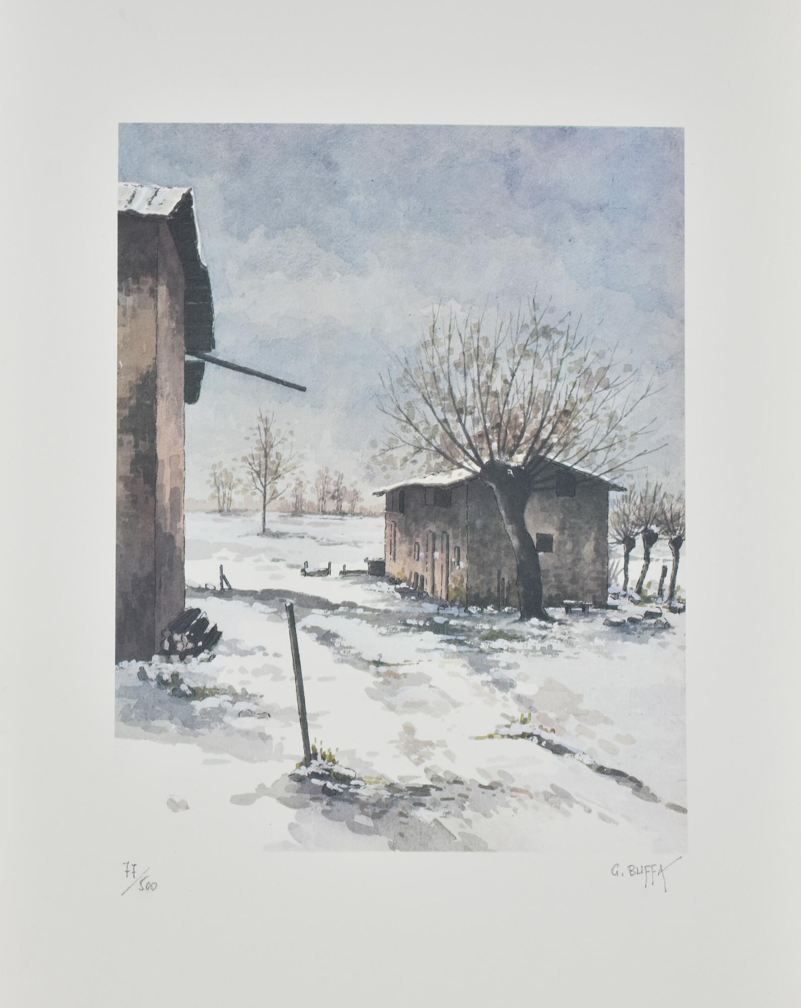 Lot 205 | Giorgio Buffa PAESAGGIO INNEVATO litografia su carta, cm 49x34; es. 77/500 firma