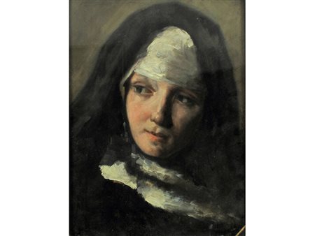 Anonimo XIX secolo Monaca olio su tavola Misure 34x24,5 cm