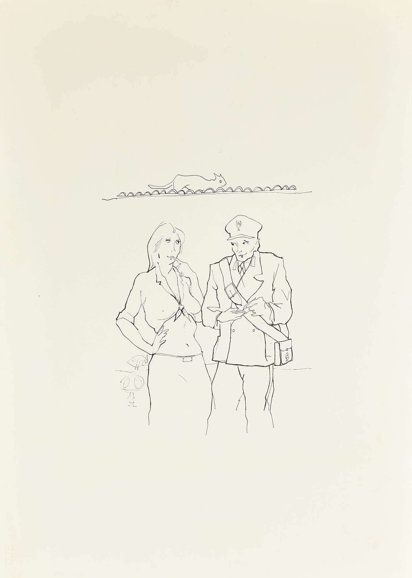 Ignoto IL CARABINIERE china su carta Hoesch Watt Carton, cm 66x48 sigla...