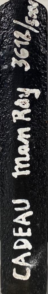 Titolo, firma e tiratura sul manico del ferro da stiro: Cadeau Man Ray 3612/5000, in teca di plexiglass