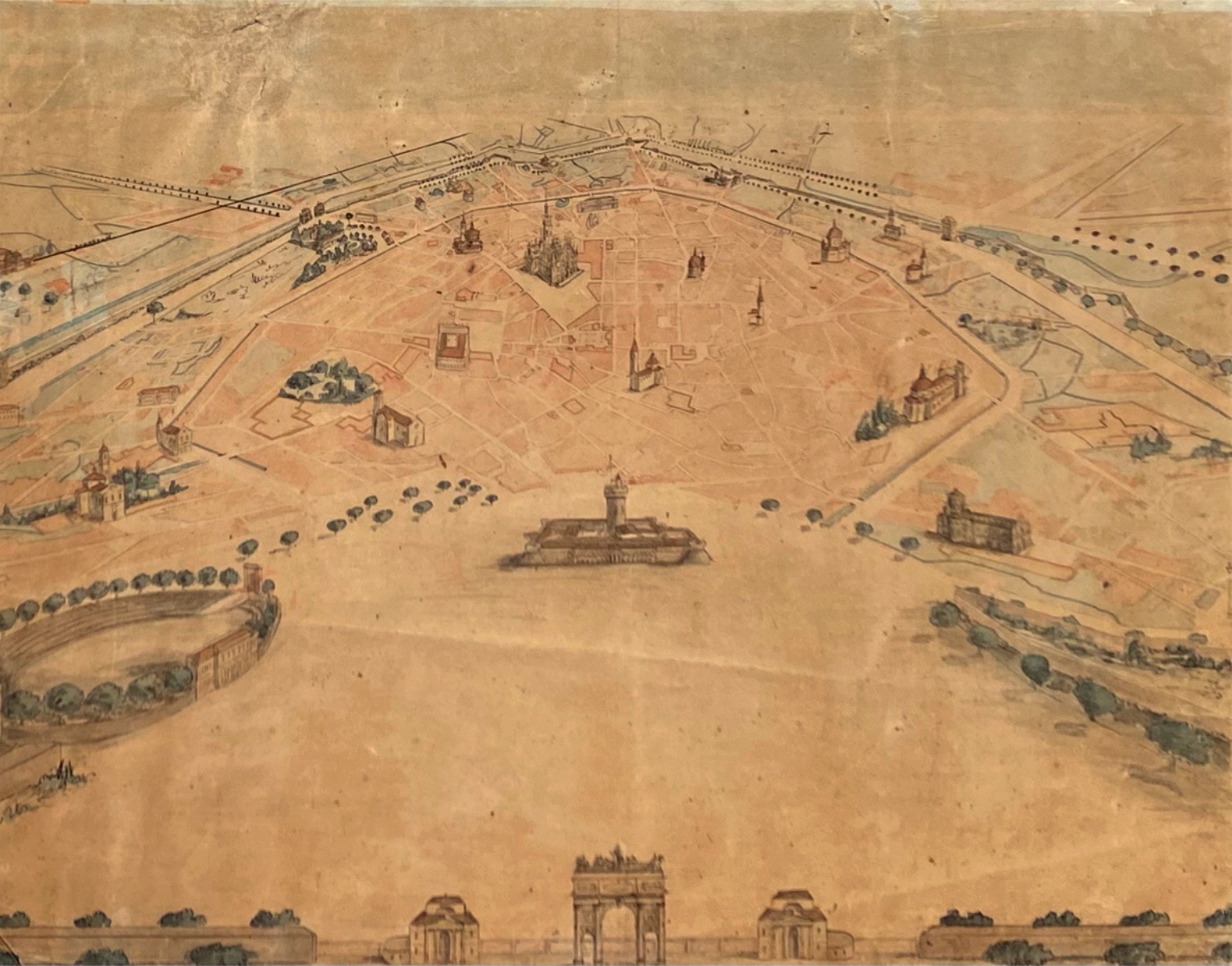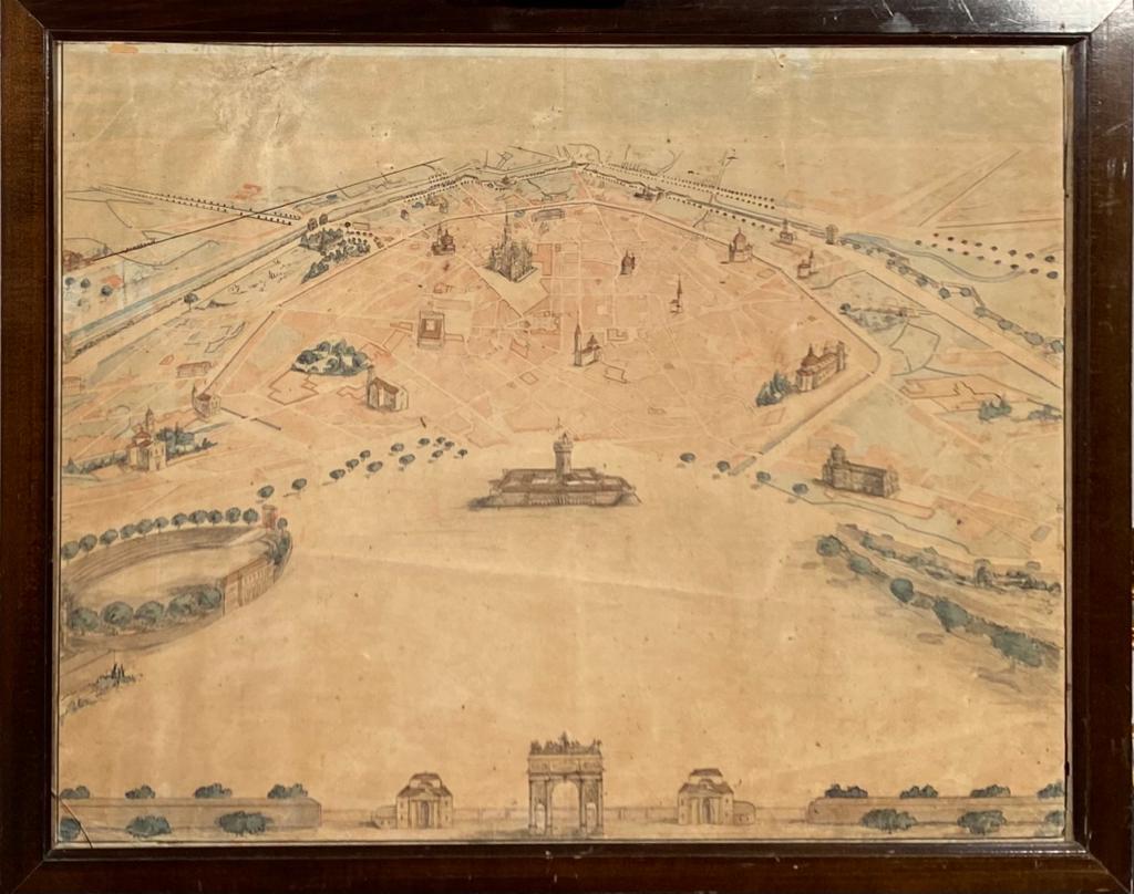 Lot 62 | ANONIMO Anonimo (An) Milano a volo d'uccello Acquarello su carta dell'800...