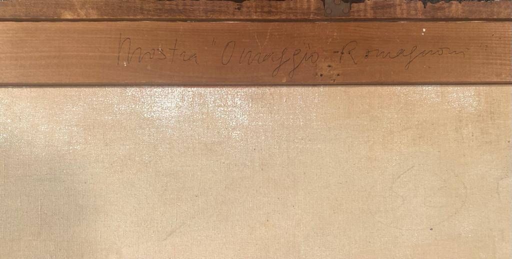 Firma e anno in basso a destra. Al retro firma, anno, titolo e scritta 'Mostra omaggio Romagnoni" (Chiesa di San Fedele).